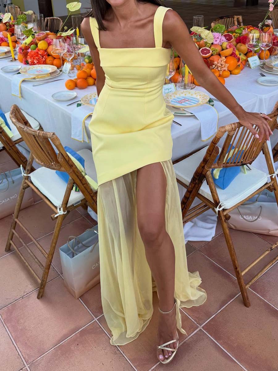 Square Collar Patchwork Chiffon Dress